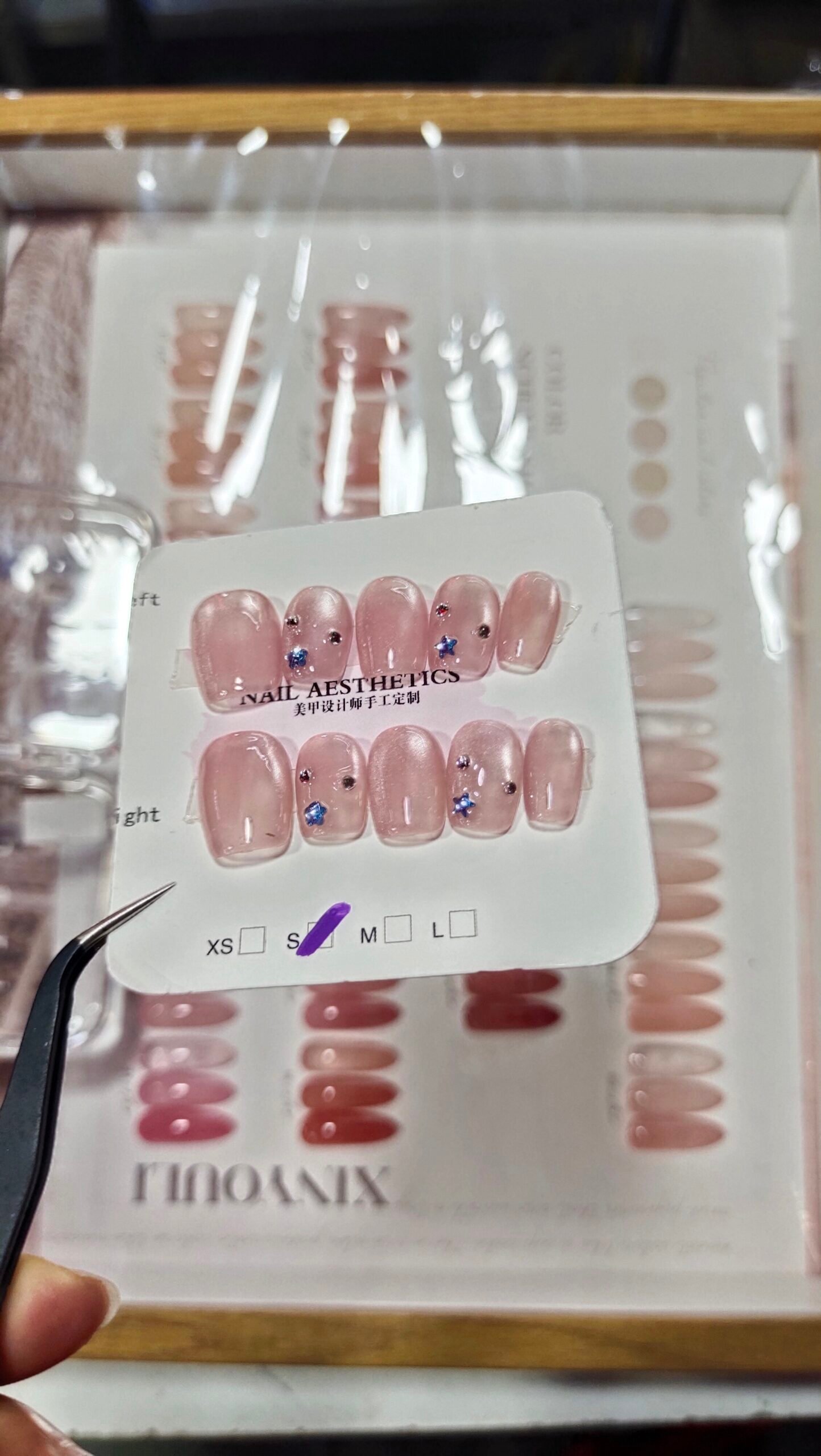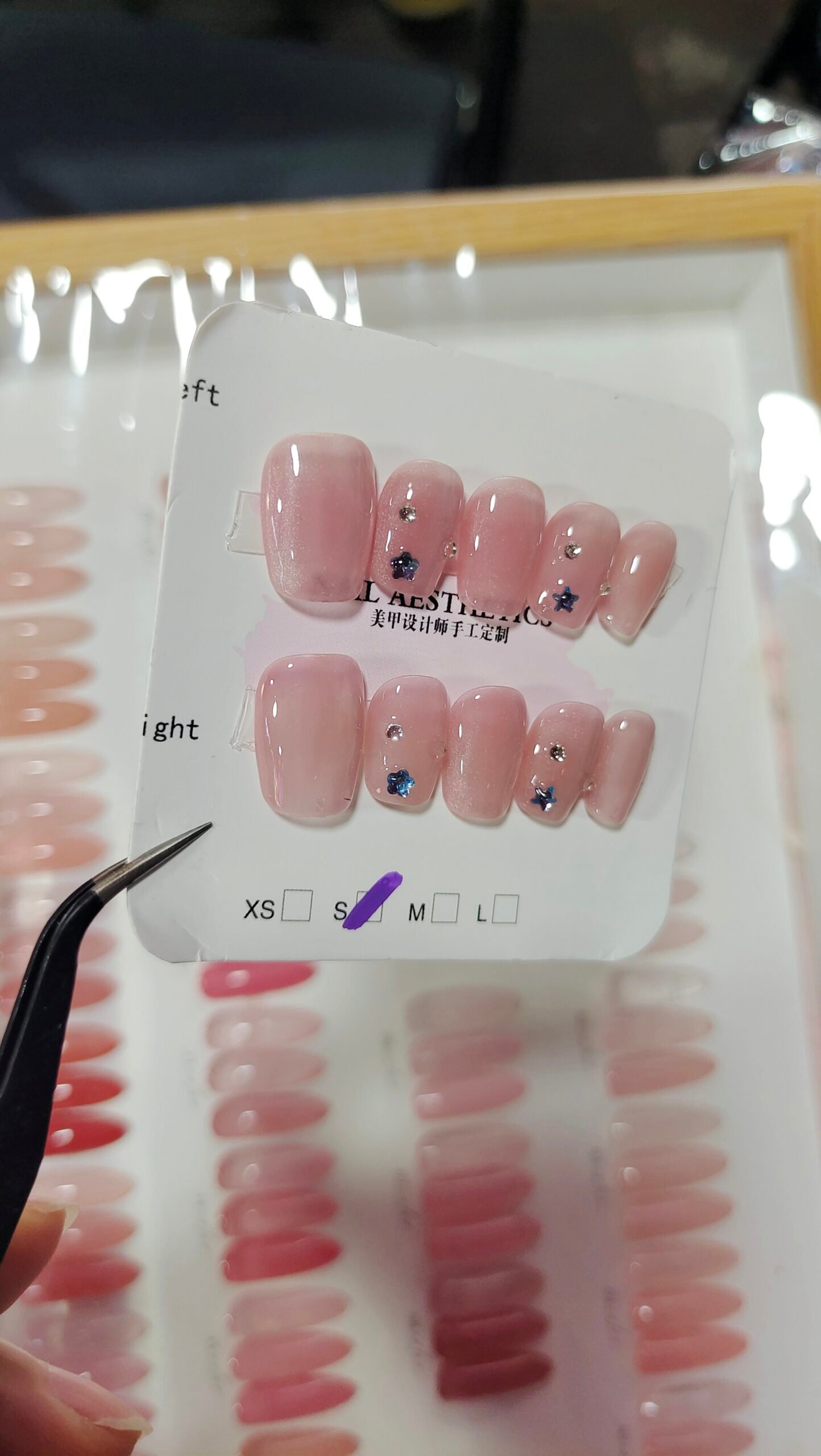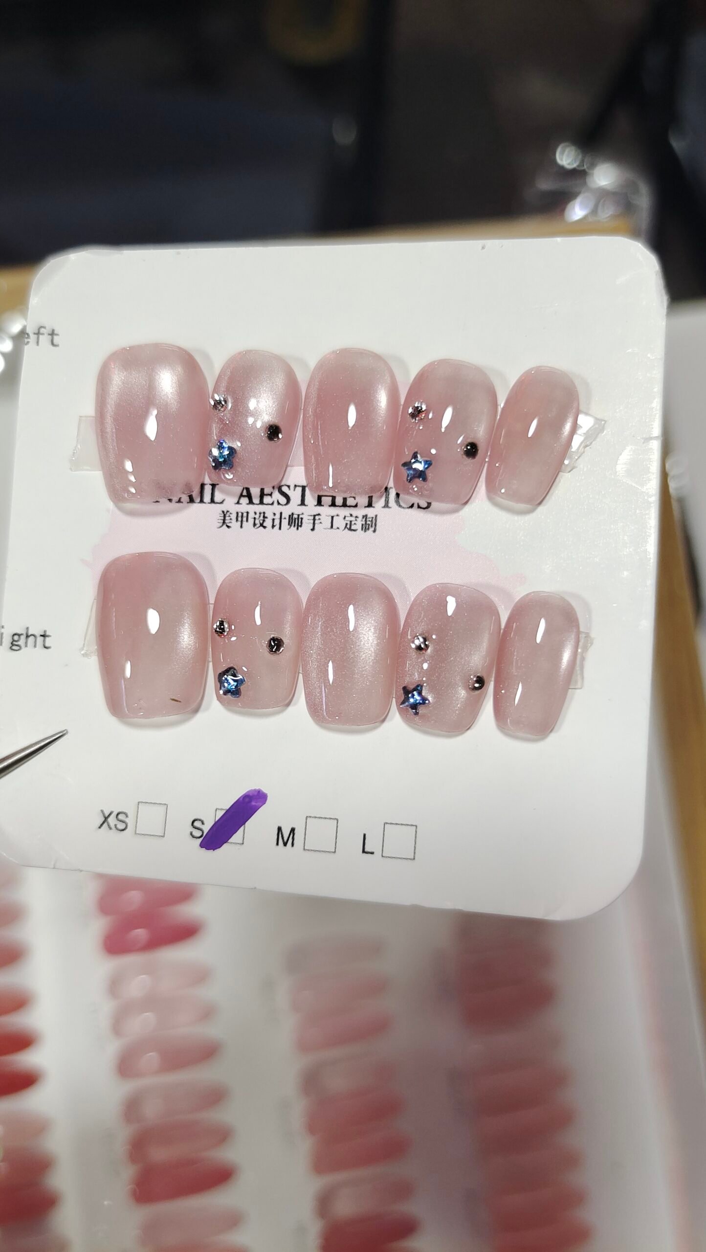 Press on Nails Medium Fake Nails Pink Glossy Glue on Nails Glitter Acrylic Nails Oval Stick on Nails for Women and Girls